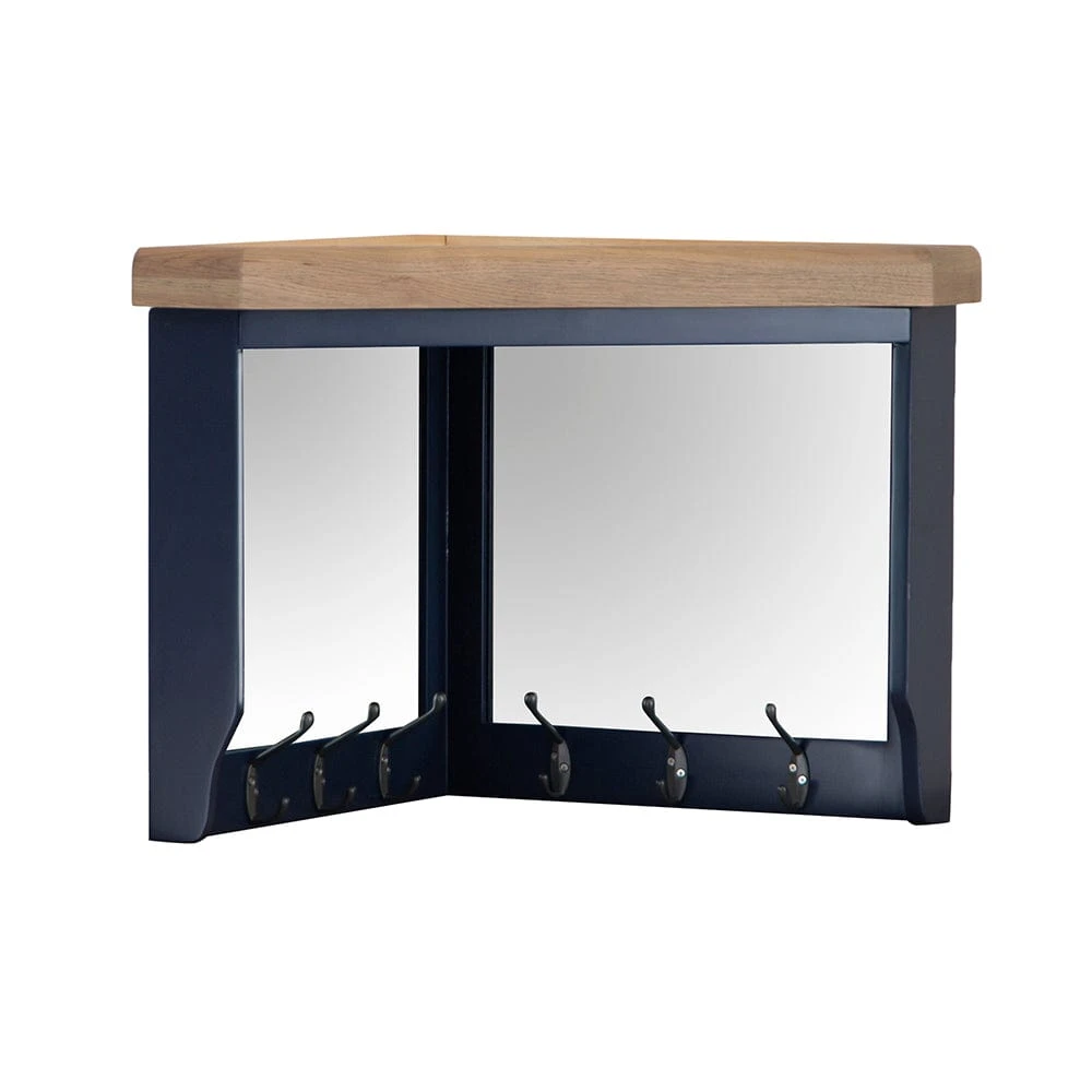 Wessex Smoked Oak Blue Painted Corner Mirrored Coat Rack
