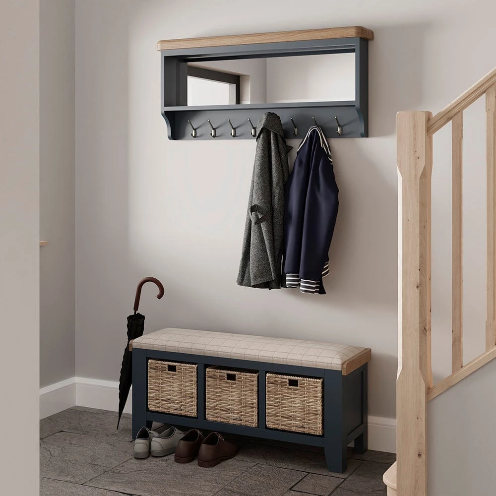 Wessex Smoked Oak Blue Painted Mirrored Coat Rack