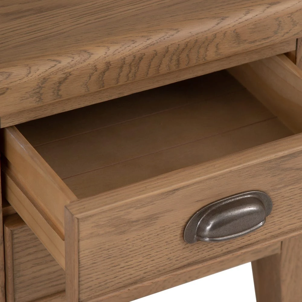 It’s easy for the night to get away from you when you’re lost in a thrilling new book. Just reach over to our Wessex smoked oak lamp table to bring a little light to your evening.