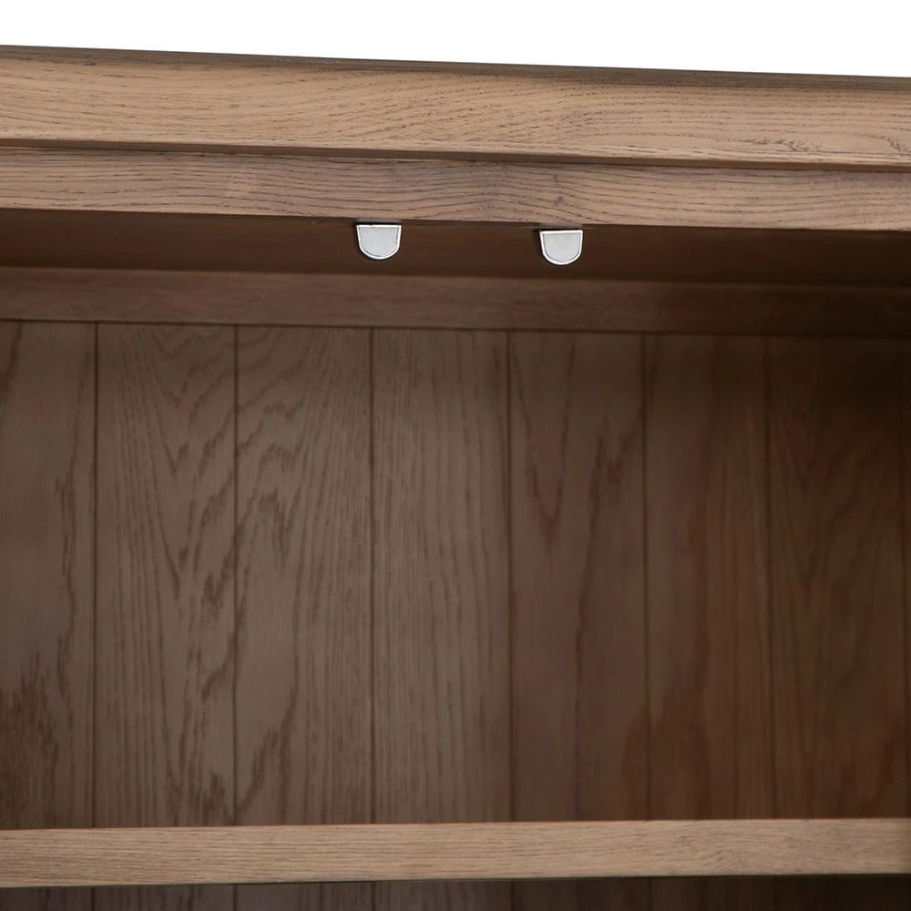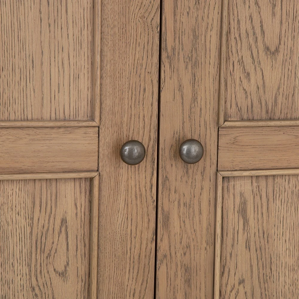 Open the two main doors to reveal three adjustable shelves – stock your pastas, grains and cereals here. On the inner door, there are four door-mounted storage spaces, perfect for wine glasses and bottles.