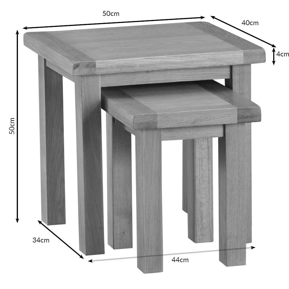 Get a double helping of chunky charm with our Winchester oak nest of 2 tables. This perfectly matched pair nest neatly together when you need them out of the way. You can slide them apart to use as separate occasional tables when you’re hosting friends.